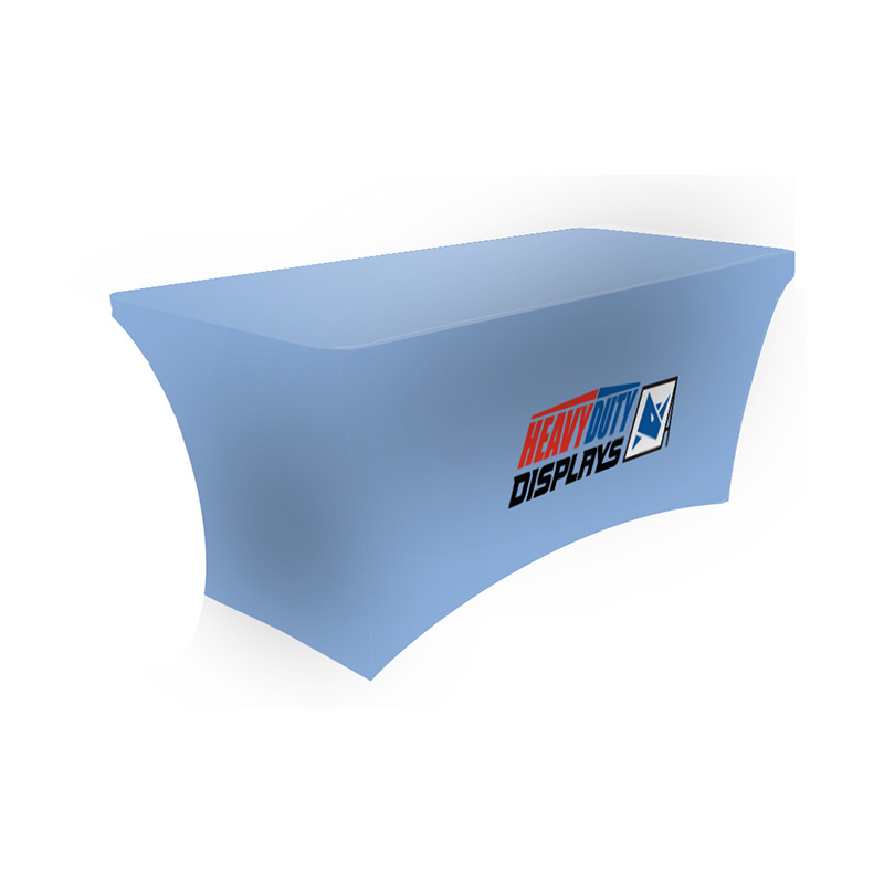 This modern update to the traditional table throw is sleek and eye-catching. The Stretch Table cover fits snug to most 6' collapsible tables, perfect for a variety of tradeshows and events. The table cover is a fully customizable dye-sub graphic print. Canvas loops included securing the cover to each leg during install.