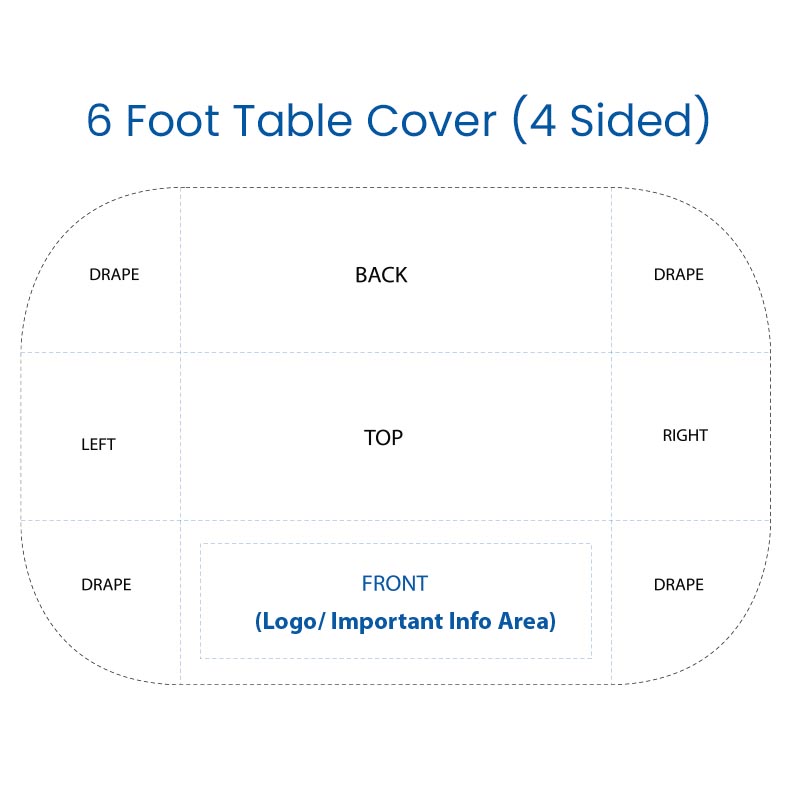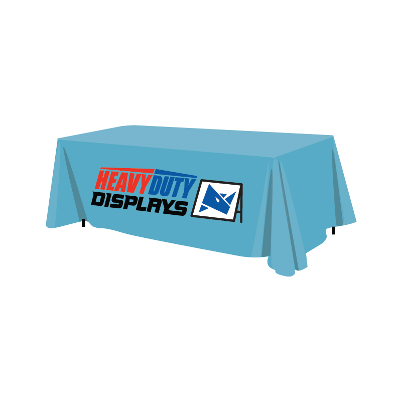 Our standard table cover is a great table topper for trade shows, exhibitions and presentations. Our table covers are dye sublimated and are 100% washable if they ever get dirty. This table cover is made from our 8.8 oz. polyester table fabric and drapes over 4 sides of a 72" x 30" x 30" display table. The table cover is sewn with rounded corners and hang approximately 2" above the floor. This throw drapes over all four sides of the table for complete coverage.Features:Dye-sublimationScratch resistantWashableMaterial:8.8 oz. Polyester Table FabricSize and Weight:Template (Upload) Size: 127.51" x 85.01"Finished Size: 126” x 83.5”Weight: 6.1 lbs