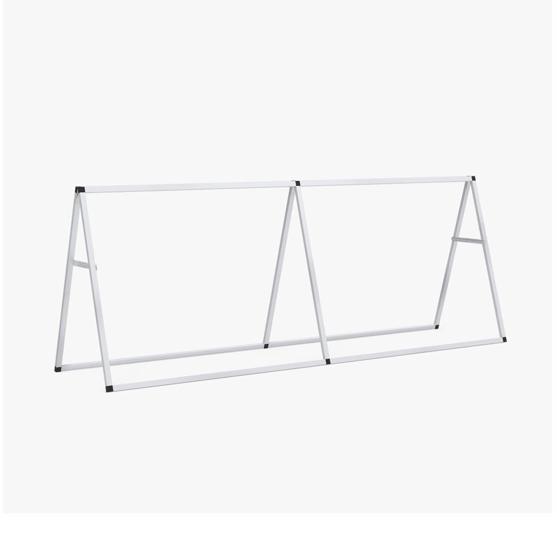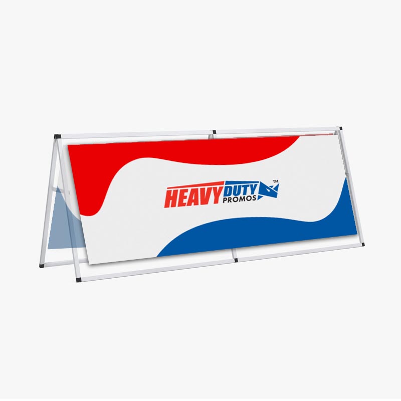 Ideal for outdoor events, the A-Frame Banner Display is a durable and effective advertising tool. Select single or double graphics to display your message for double the impact. The sturdy aluminum poles easily connect for quick assembly and the grommeted banners freely attach via hook and bungee cords.