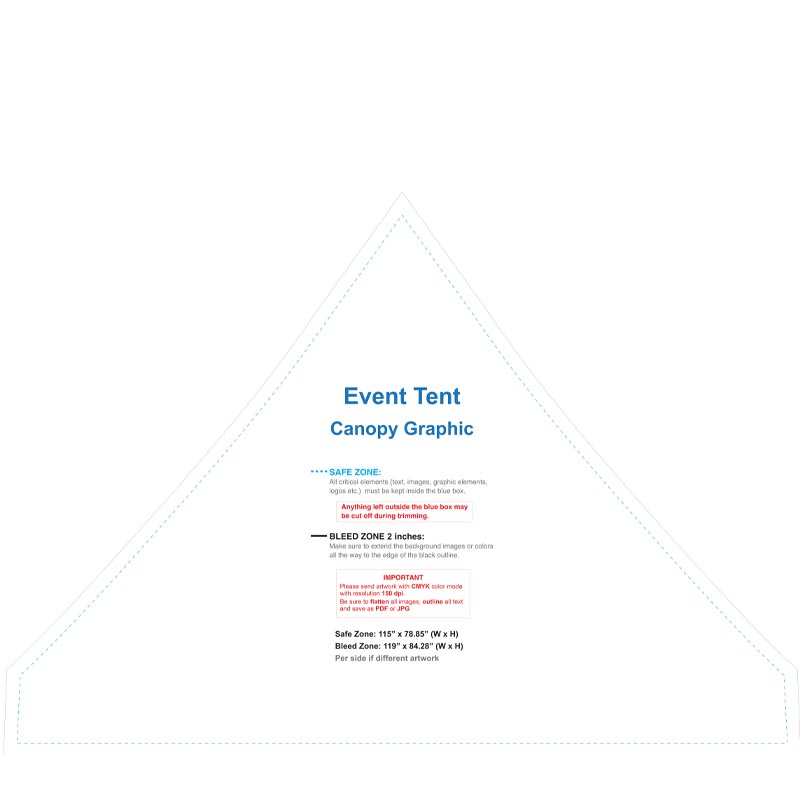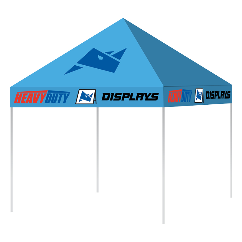 Canopy is printed and sewn weather resistant tent polyester. Print your brand message on each of the four peaks and valance panels. Our large format full color capabilities take artwork seam to seam unlike competitor tents that rely on small vinyl applications.
