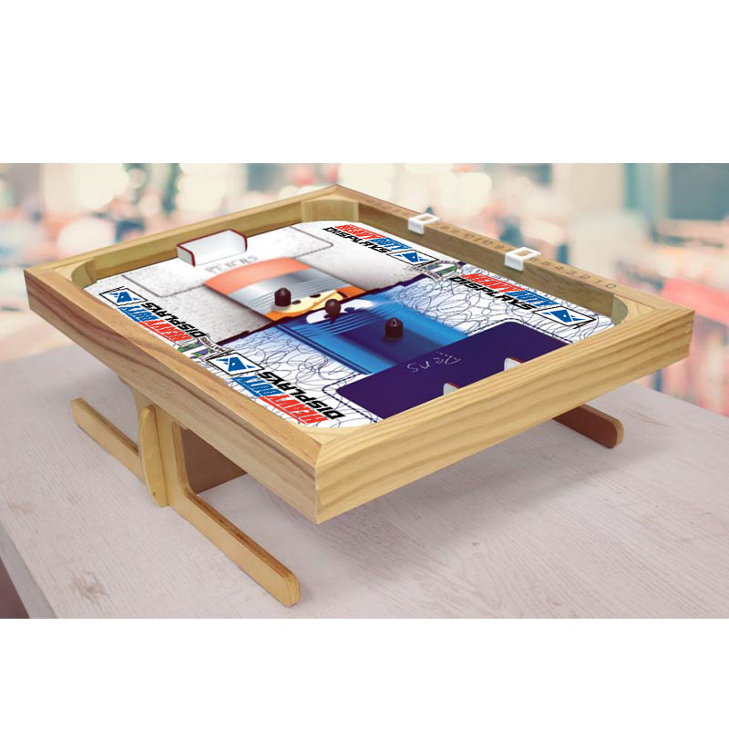 Mag-ball is played just like tabletop soccer or hockey, but with a twist! There are 2 players that use magnetic rods under the board to control the kickers on top of the board so they can kick the ball around the field until a player scores a goal in the recessed goal areas. Points can be logged by the handy, side-mounted scoring rail that counts 0-10 on each players’ side of the field. This branded game has an imprinted surface measuring approximately 16.75”L x 12.5”W. Exciting and fun to play for all ages.