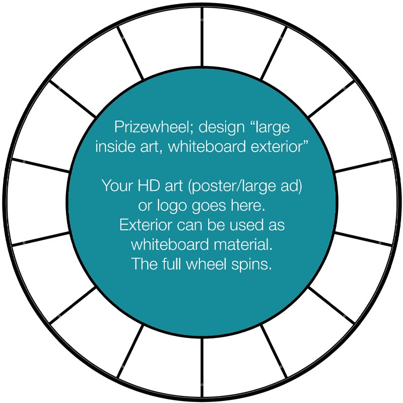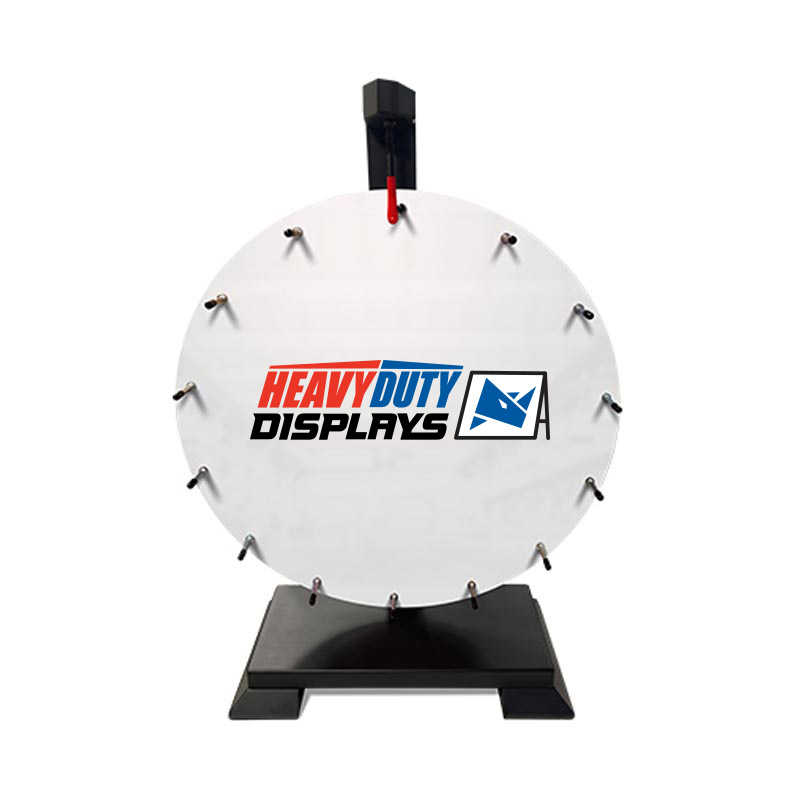 Introducing our premium custom-branded prizewheel game – a captivating addition to any event or space! The wheel (20″) is adorned with vibrant CMYK printed vinyl, laminated to achieve a dry-erase functionality, allowing for easy customization and endless fun.Vibrant Imprint: Make a statement with a fully customizable prizewheel featuring CMYK printing. Showcase your brand, graphics, or any design of your choice.Durable Construction: Crafted with durability in mind, our prizewheel is designed for long-lasting performance, ensuring countless spins of excitement.Interactive Gameplay: Engage your audience with a dynamic prizewheel experience. Perfect for events, trade shows, and promotions, it adds a thrilling element to your brand.Versatility: Whether stock or custom designs, our prizewheel suits various occasions, making it an ideal choice for promotional events, parties, and more.Easy Setup: With its user-friendly design, setting up your custom-branded prizewheel is quick and hassle-free, ensuring maximum enjoyment for participants.Elevate your events with our custom-branded prizewheel game. Showcase your brand, create memorable moments, and turn any space into an interactive experience with this high-quality and versatile game.