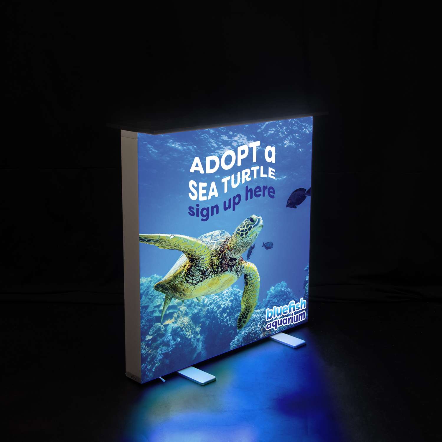 Available in two display options: graphic panels on both the front and back, or graphic panel on the front with a block-out panel on the back
