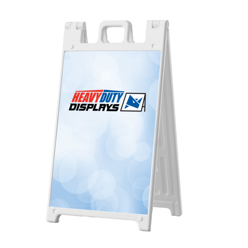The Signicade Deluxe is the ultimate sidewalk advertising solution for those that need quick change graphics. The heavy-duty plastic sandwich board has two recessed 24x36 inch recessed graphic areas on the front and back. 24" x 36" signs slide easily into place for display, swap out rigid inserts as often as you need. Our graphics are full-color UV direct printed coroplast for a long-lasting durable matte print.
